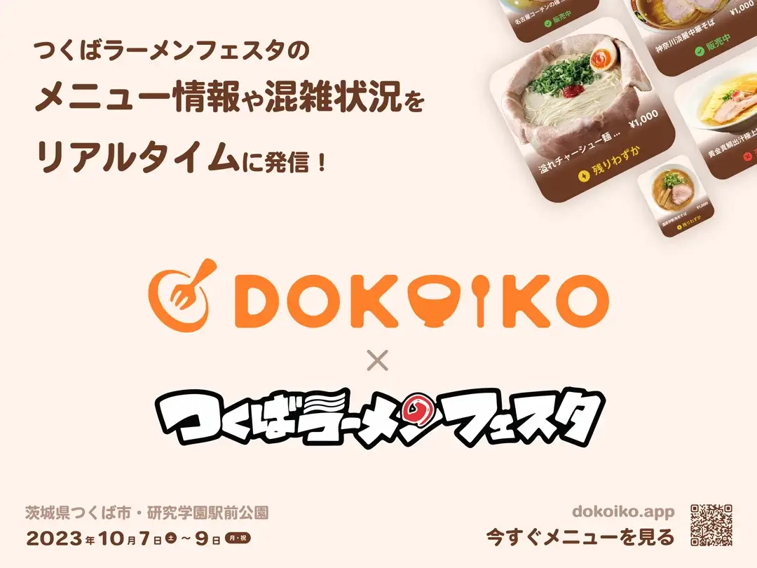 【つくば市】つくばラーメンフェスタのメニュー・売り切れ情報を「dokoiko」でリアルタイム発信!!