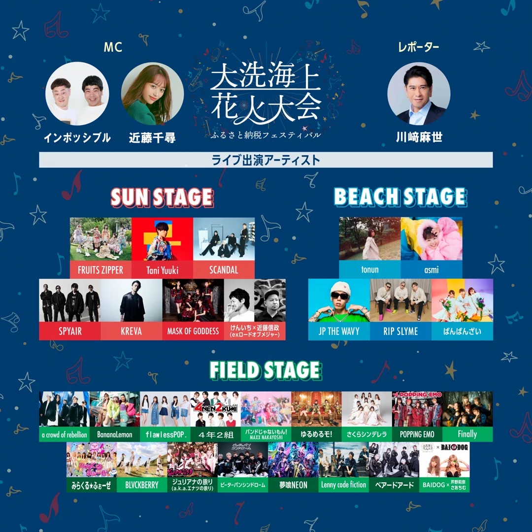 【大洗町】開催まで1週間!”ふるさと納税フェスティバル”大洗海上花火大会出演アーティスト・タイムテーブル決定!!