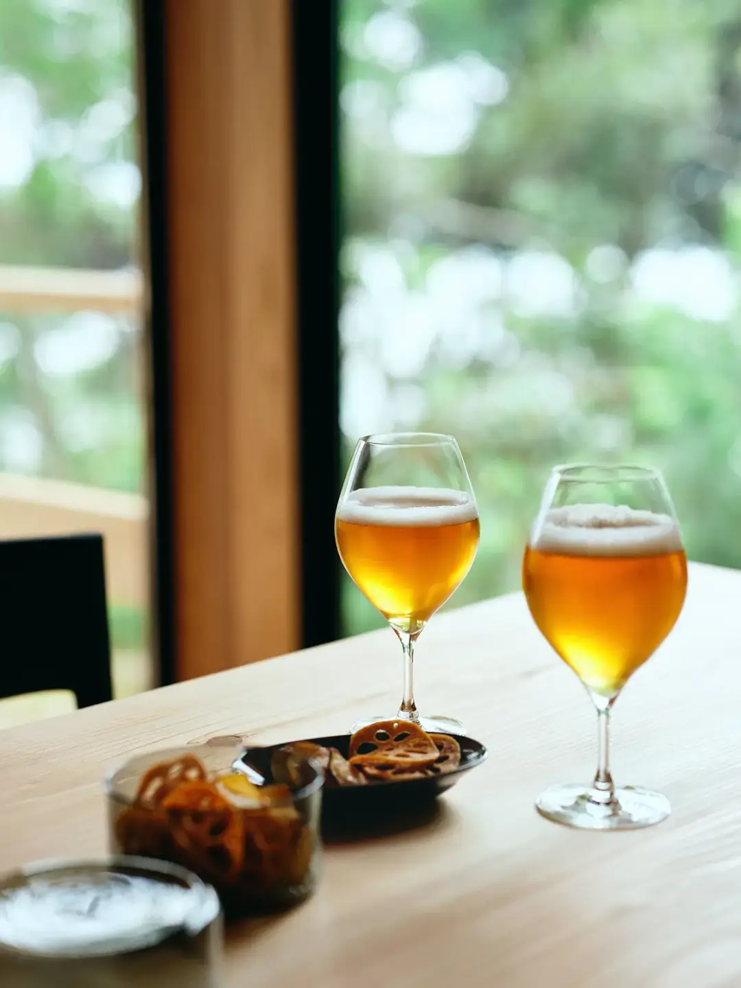 宿内の専用キッチンで調理する地域食材を活かしたお食事のほか、近隣には自社のクラフトビール醸造所を備え、オリジナルのクラフトビールをお楽しみいただけます。湖畔の別荘で過ごすように、ゆったりとプライベートな滞在をご堪能ください。