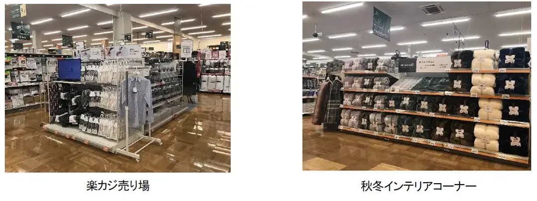 カインズ阿見店では、掃除・洗濯・料理などの家事がラクに楽しくなるカインズオリジナル商品「楽カジ」シリーズや日用品・生活雑貨などの生活必需品に加え、冬でもあたたかく快適に過ごせる寝具やクッションをはじめとするインテリアなど、お客様の毎日のくらしに寄り添った商品を11万アイテム以上取り揃えています。