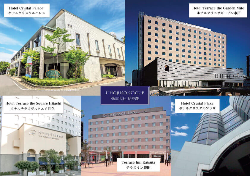 株式会社長寿荘(本社:茨城県ひたちなか市/代表取締役:海野泰司)は、創業70年以上を誇る経験と実績を元に、茨城県内に5つのホテルを展開するグループ企業です。「SMILE EXEPERIENCE-関わるすべての人を笑顔に-」というグループミッションを掲げ、地域そして県外・海外からのお客様、グループスタッフと、すべての関わる人を笑顔にするために何が出来るかを考え、新しい感動体験を提供していきます。