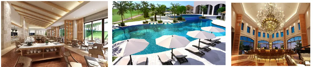 飲食施設は全部で8施設。レストラン5施設とバー3施設という構成である。付帯施設も充実していて、シミュレーションゴルフ、フィットネスジム、サウナ(ドライとクール)、ガーデンプール(屋外)、インドアプール(室内)、スパ、スーベニアショップ、ランドリールーム、サステナブルステーションなどが揃う。