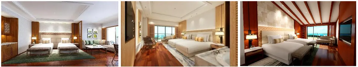 ホテルの客室は全201室。最もベーシックな部屋でも45平方メートルを超えるというから、かなりゆとりのある造りである。スイートルームやヴィラまで揃えているというのだから、本格的なラグジュアリホテルとしての位置づけなのだろう。