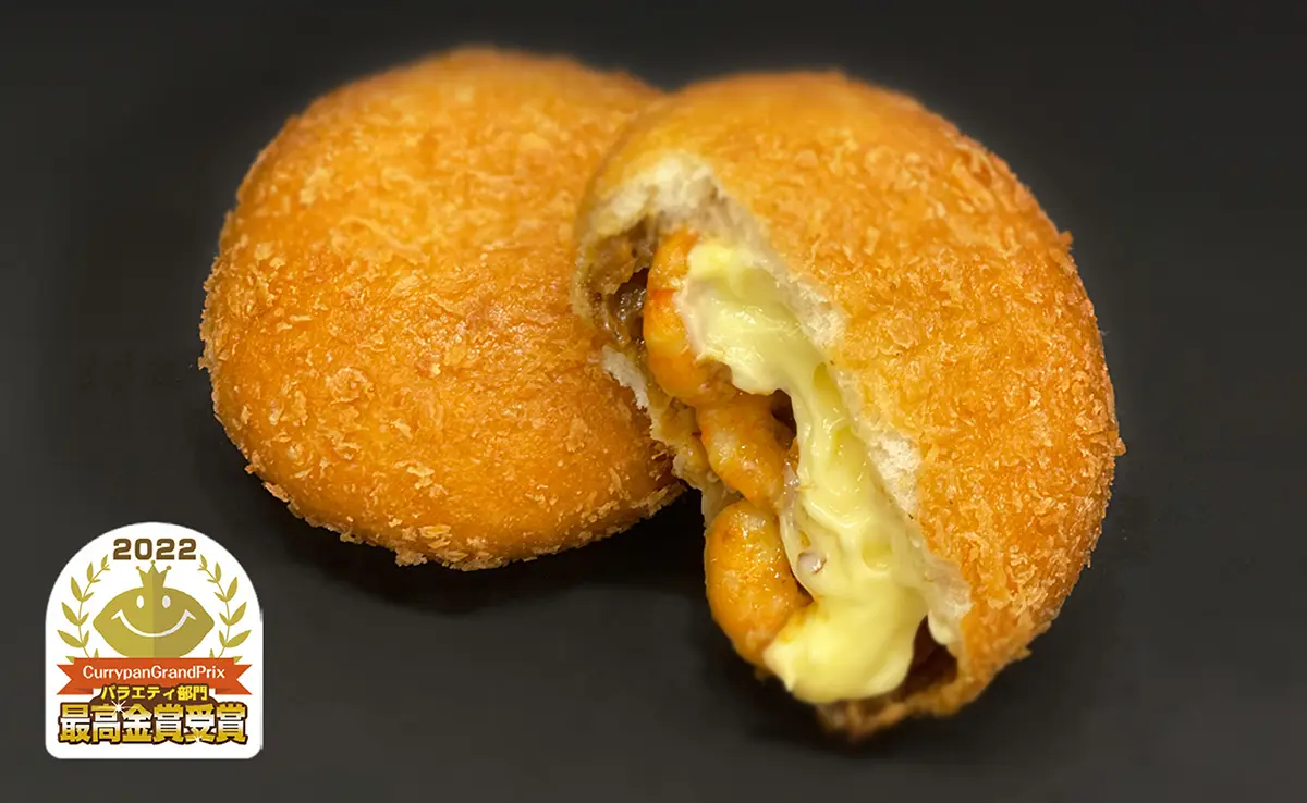 北海道産小麦でつくった、お餅のような弾力の生地に衣をつけて毎日お店でカリッと揚げています。サクサクの衣の中から特製カレールーとチーズフォンデュがとろけ出す『カレーパンフォンデュ』。カレールーに甘エビオイルを加え、プリプリの海老が丸ごと入った『海老カレーパンフォンデュ』は、カレーパングランプリ®(※2)で4年連続・金賞を受賞。2022年には最高金賞を受賞!全国の数ある