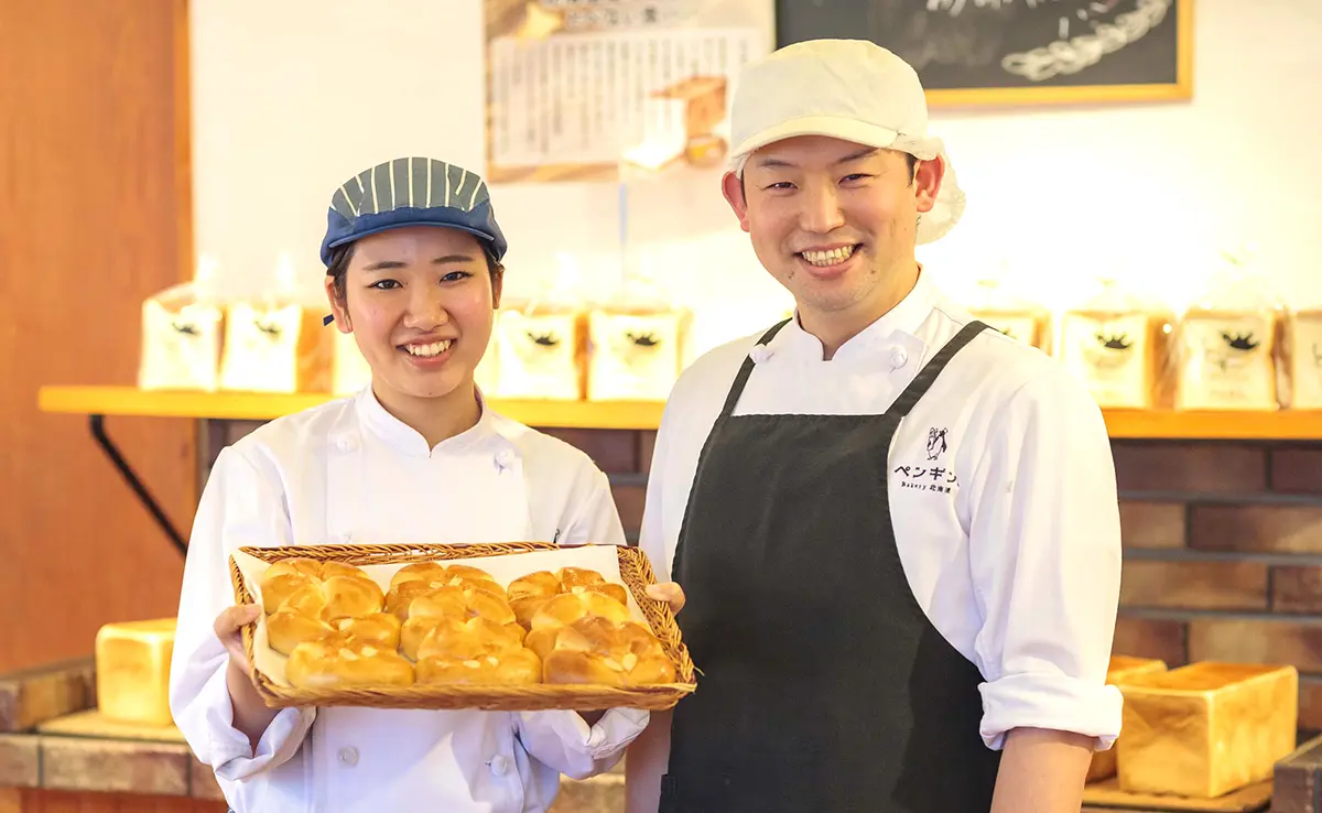 ペンギンベーカリーは、「北海道の大地で育った小麦をつかい、子どもからお年寄りまで毎日食べていただけるパン」をコンセプトに全国展開する北海道のパン屋さん。北海道産の小麦をつかった焼きたてパンを求めて、多くのお客様がご来店されます。