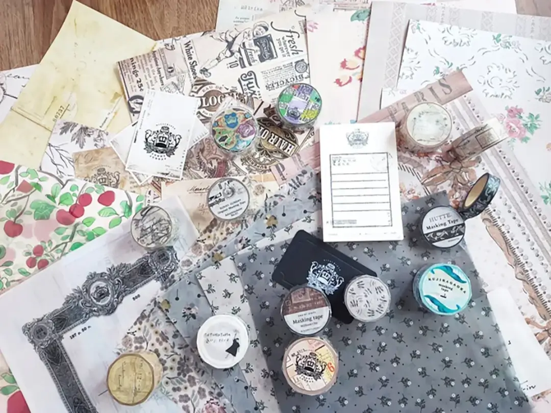 常陸太田市の雑貨屋「サニーサンデイ」とコラボ。オリジナルクラフトペーパーを作って可愛いハガキを作ろう。コラージュボックス作りのワークショップも期間限定で開催。