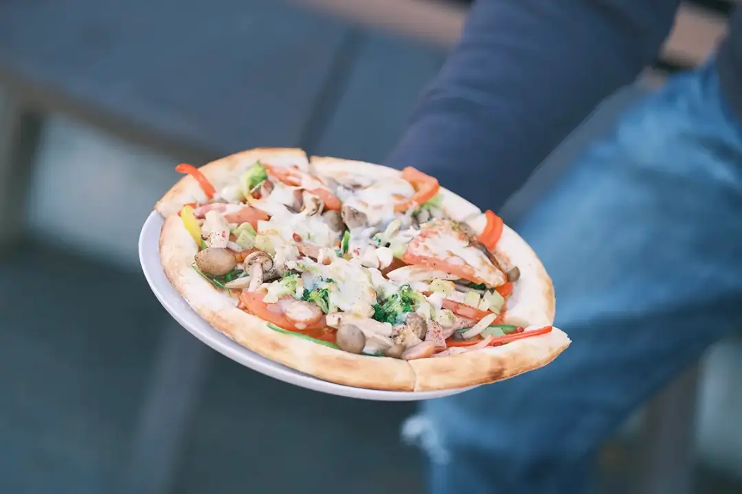 自分でトッピングして、焼き上げます。出来立てを味わって。