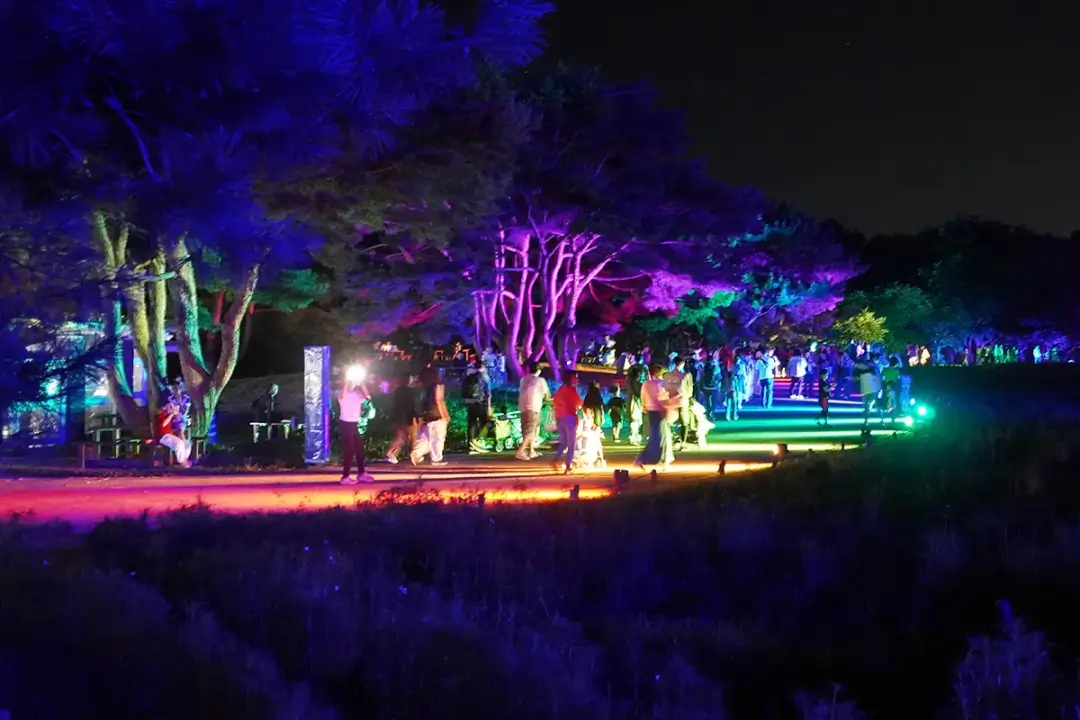 「西口エリア」~「みはらしの丘」では、9月27日(金)から10月6日(日)の10日間限定で「コキアライトアップ」を開催します。メイン会場となる「みはらしの丘」では、音楽に合わせてコキアがカラフルにライトアップされるショーをご覧いただけます。ほかにも、入園口からメイン会場に至るまでの園路や樹々、施設等のライトアップやステージショー、クラフト体験や約40店舗の飲食ブースがイベントを盛り上げます。