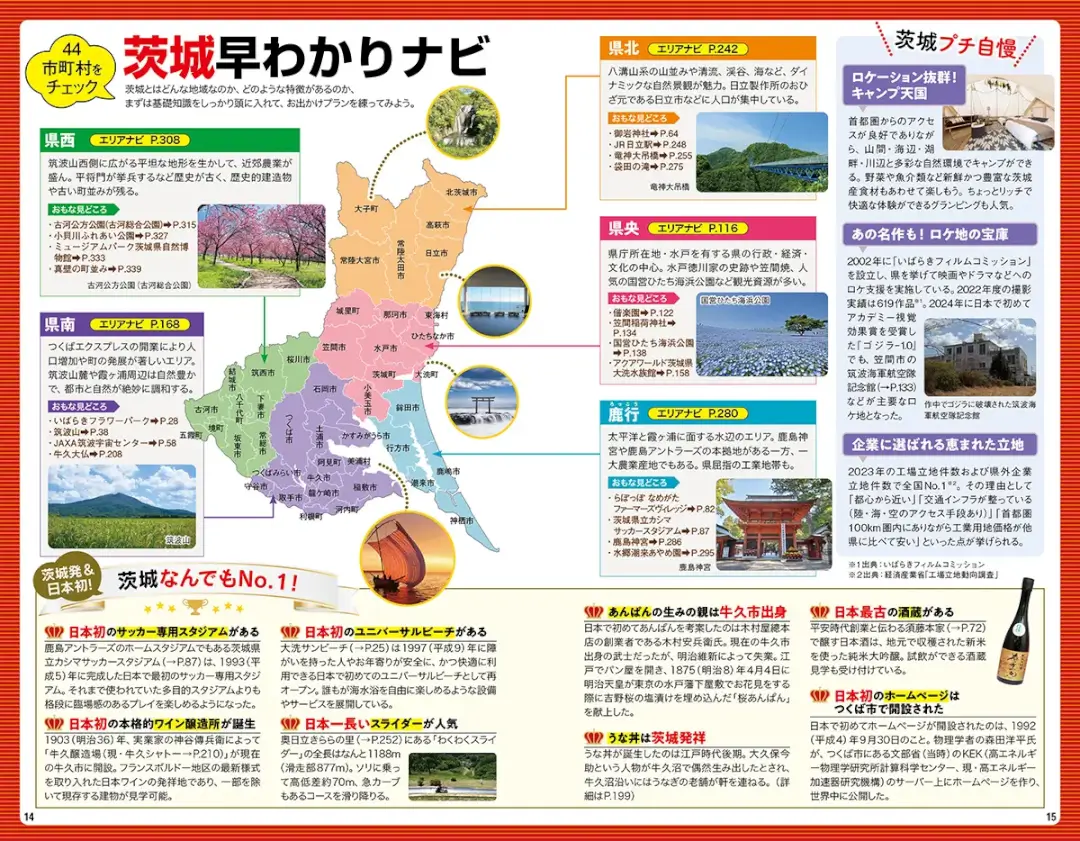 茨城県民&ゆかりの500人に聞いたアンケートから、リアルな県民の姿が浮き彫りになる特集ページのほか、クチコミも満載。「知らなかった!」「行きたい!」が必ず見つかる、「最強の旅事典」永久保存版です!