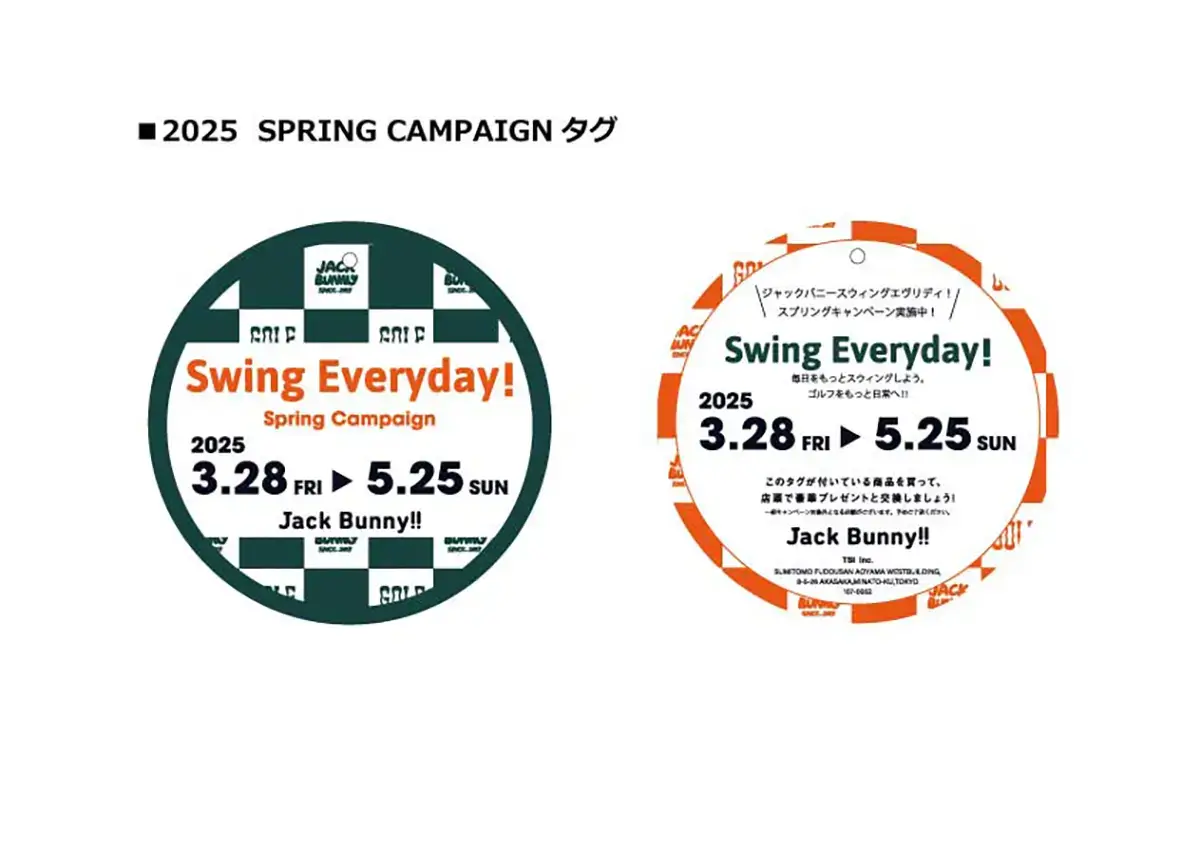 ゴルフアパレルブランド「Jack Bunny!!」が、3月28日(金)から5月25日(日)までの期間限定で「スウィング エヴリデイ!スプリングキャンペーン」を開催します。対象商品を購入すると、先着でループ付きオリジナルタオルがプレゼントされます。新作アイテムは、架空の街角マーケット「JACK BARKET」をテーマに、チェッカー柄やフルーツ、お菓子のパッケージデザインを取り入れ、POPで楽しいデザインが特徴です。この春、ゴルフをもっと日常に取り入れてみませんか?