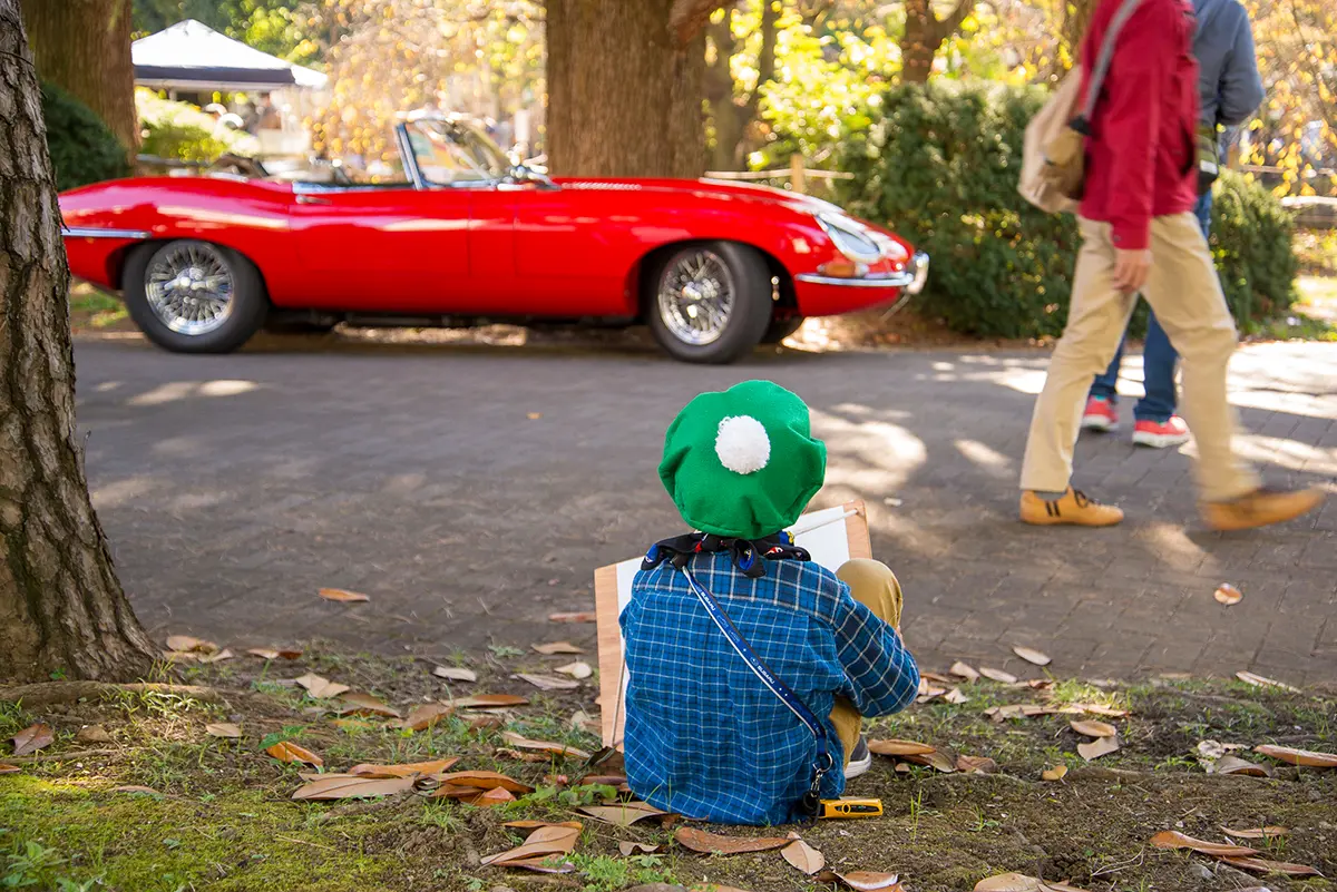 会場内にはキッチンカーやガレージセールなどの出店が並び、小学生以下の子どもを対象にした「子どもお絵描き大会」も開催される。クルマの絵を描いたり、好きな絵を描いたり。子どもたちにとっては、大きなお絵描き会場なのだ。