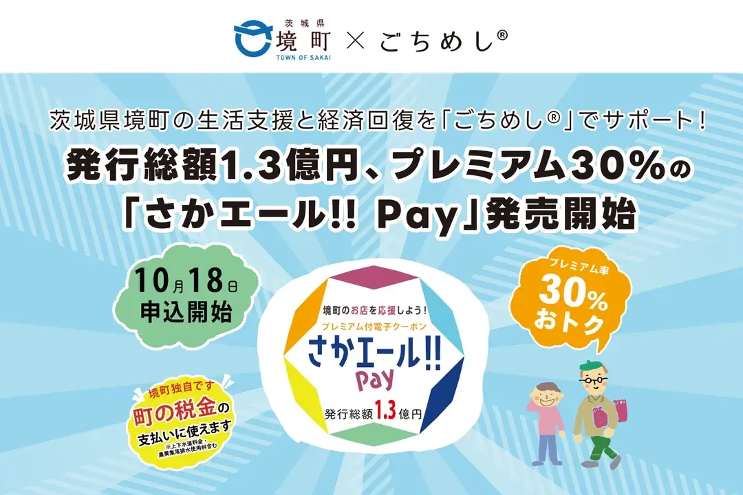 境町|茨城県境町の生活支援と経済回復を「ごちめし」でサポート!!発行総額1.3億円!プレミアム30%の「さかエール!! Pay」発売開始